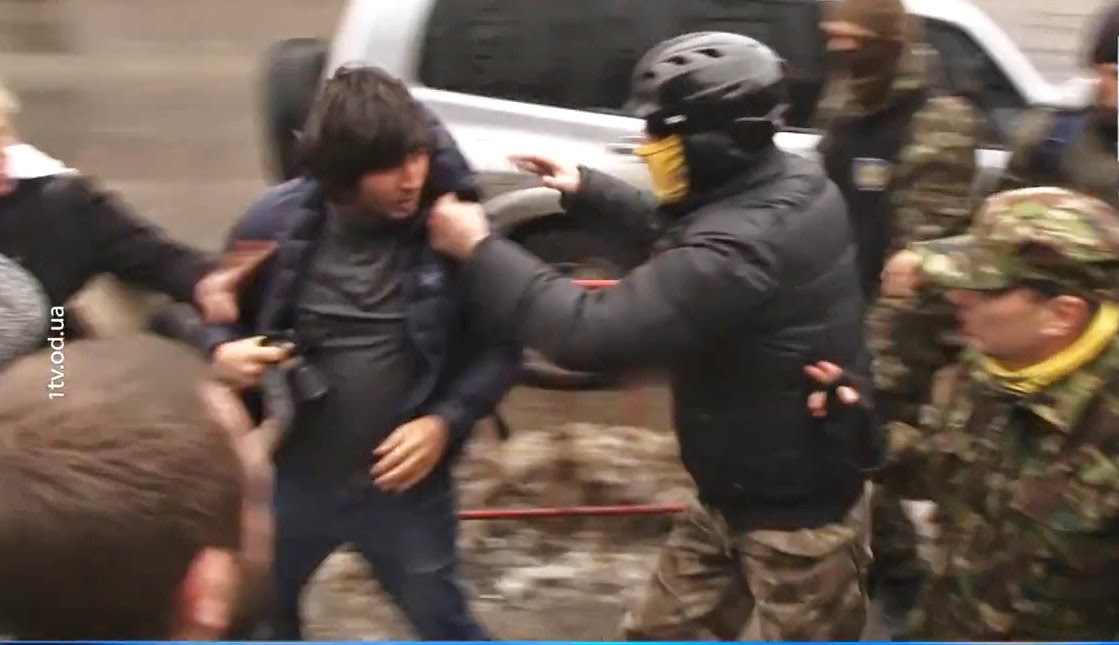 Пока координатор нашей группы Татьяна Герасимова была в зале, я пыталась понять и как-то утихомирить ситуацию снаружи. Сначала пыталась разъяснять, потом рассказывала про 2 мая, как Шехерезада, чтобы успокоить буйных, потом пыталась говорить с каждым отдельно, потом общалась с ментами, потом попала в кольцо Самообороны и Правого сектора вместе с активистом Куликова поля, пыталась его увести и стала свидетелем того, как его сначала попытался ударить дубинкой пожилой представитель Правого сектора (его остановил Кожухарь), а потом меня отодвинули, и у него выдернули паспорт из кармана, и это сделал боец АТО.