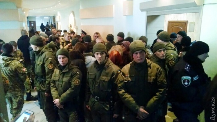 | Сегодняшнее заседание в Малиновском суде происходило в закрытом режиме, вход в зал охраняли бойцы Нацгвардии |